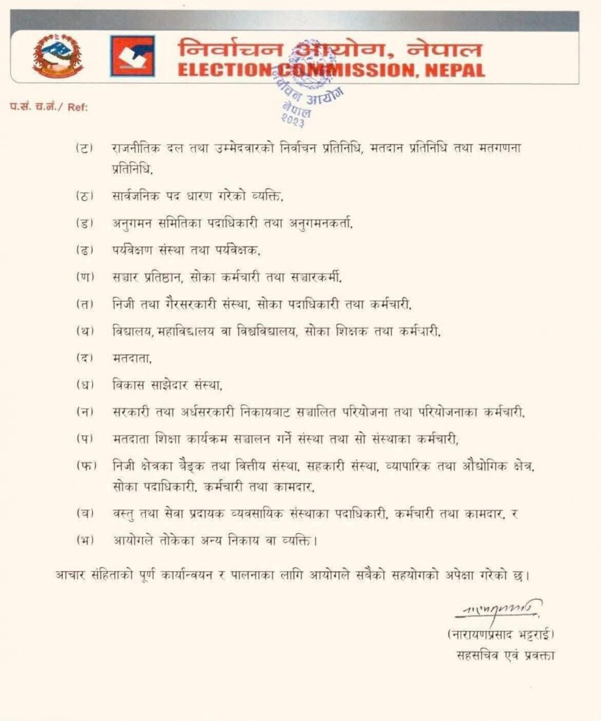 आज राति १२ बजेदेखि लागू हुने निर्वाचन आचारसंहिता यस्तो छ