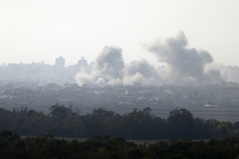 अगस्ट १०, २०२५ मा घेराबन्दीमा परेको गाजा पट्टीमा इजरायली आक्रमणको क्रममा उठिरहेको धुवाँ/ © AFP