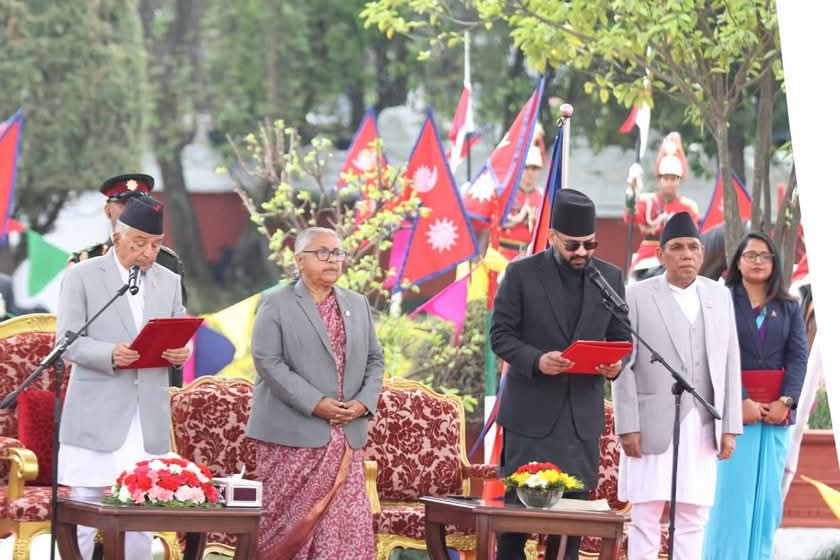 नवनियुक्त प्रधानमन्त्री बालेन्द्र शाह ‘बालेन’लाई राष्ट्रपति रामचन्द्र पौडेलले शीतलनिवासमा आयोजित एक विशेष समारोहमा पद तथा गोपनीयताको शपथ ग्रहण गराएका छन्। प्रधानमन्त्री तथा मन्त्रिपरिषद्को अभिलेखअनुसार शाह आधुनिक नेपालको ४३औँ प्रधानमन्त्री हुन्।…